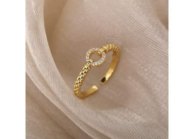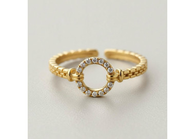 Es un anillo diseñado para quienes aman el lujo y la delicadeza. Su diseño redondo adornado con brillantes circonitas, en forma redonda con Circonitas a su alrededor, es un anillo muy exclusivo y elegante, es una joya original y divertida.