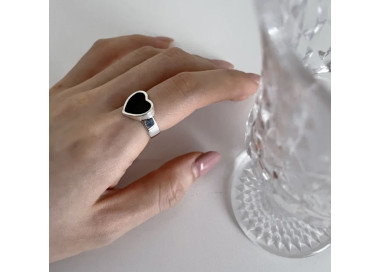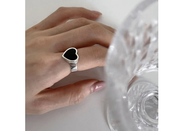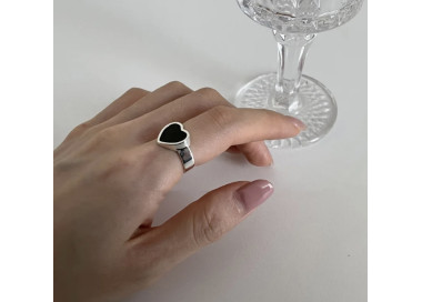 Idalia es un anillo con diseño minimalista tiene como protagonista el corazón de piedra negra del centro, es un anillo muy exclusivo y elegante de estilo Boho Style, es una joya original y divertida.