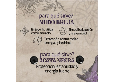El poder del Ágata Negra y el Nudo de Bruja Este anillo no es solo un accesorio, es una herramienta de defensa energética. El diseño combina el Nudo de Bruja, que bloquea y devuelve los hechizos, con una Ágata Negra central. En la gemología, esta piedra es conocida por su capacidad para absorber la negatividad, aportar estabilidad emocional y ofrecer un fuerte "anclaje" a tierra, creando una sinergia protectora inigualable.