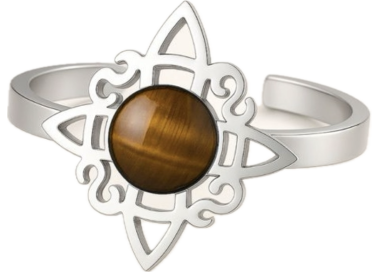 El anillo combina el Nudo de Bruja, que anula los hechizos oscuros, con una piedra Ojo de Tigre natural. Famosa por su efecto óptico hipnótico, esta gema es el talismán por excelencia para proteger contra el "mal de ojo" y las envidias. Además, aporta coraje, rompe bloqueos mentales y potencia tu fuerza de voluntad para alcanzar tus metas.