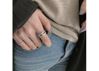 Elayne es un anillo de diseño minimalista, tiene como protagonista su forma de nudos entrecruzados, es un anillo muy exclusivo y elegante de estilo Boho Style, es una joya original y divertida.