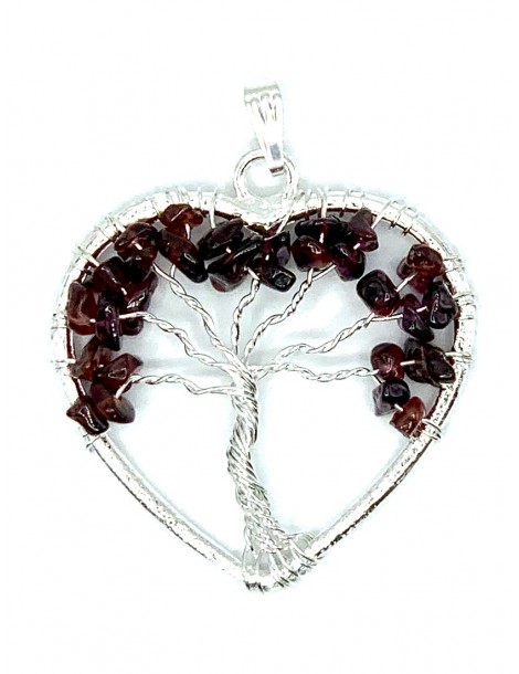 El colgante destaca por su forma de árbol de la vida, es una joya elegante, original y divertida. Diseñada con piedras naturales de Granate. Está ensamblado a mano.