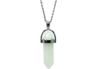 COLLAR BITERMINADO DE CALCEDONIA El colgante destaca por su forma de doble punta es una joya elegante, original y divertida. Diseñada con piedras...