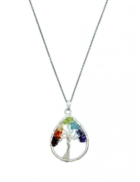 COLLAR ÁRBOL DE LA VIDA 7 CHAKRAS El colgante destaca por su forma de gota es una joya elegante, original y divertida. Diseñada con piedras...