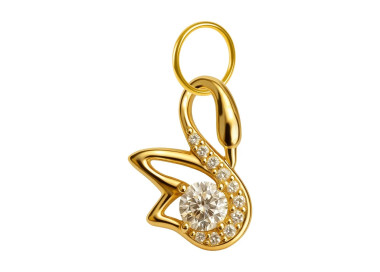 El charm Cisne Dorado es una pieza de una elegancia arquitectónica y una serenidad cautivadora. Su diseño en forma de cisne, con un acabado dorado de alto brillo, presenta un cuerpo esculpido que fluye con la gracia natural de estas aves, realzado por una hilera de cristales pavé que culminan en una gema central de talla circular, símbolo de pureza y perfección.