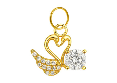 El charm Love Cisne es una pieza de un romanticismo poético y una ejecución artística excepcional. Su diseño presenta las siluetas de dos cisnes en Acero Inox abado dorado de 18k que se unen para formar un corazón perfecto, custodiando un espectacular circonita central de talla redonda que irradia una claridad absoluta.