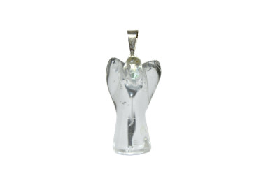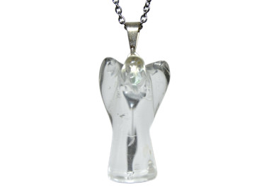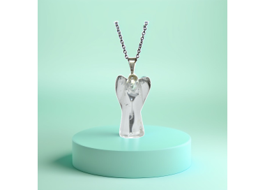 El colgante destaca por su forma de Ángel, es una joya elegante, original y divertida. Diseñada con piedras naturales de Cuarzo Blanco. Está ensamblado a mano en Acero.