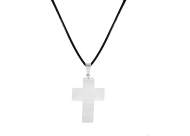 El colgante destaca por su forma de Cruz, es una joya elegante, original y divertida. Diseñada con piedras naturales de Cuarzo Blanco. Está ensamblado a mano en Acero.