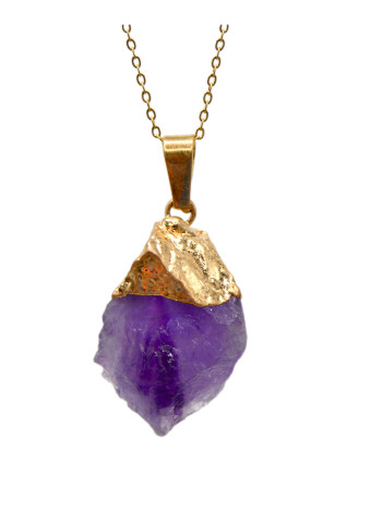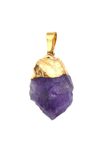 COLGANTE AMATISTA El colgante destaca por su original forma al natural sin pulir con el borde dorado, es un colgante elegante, fino y divertido....