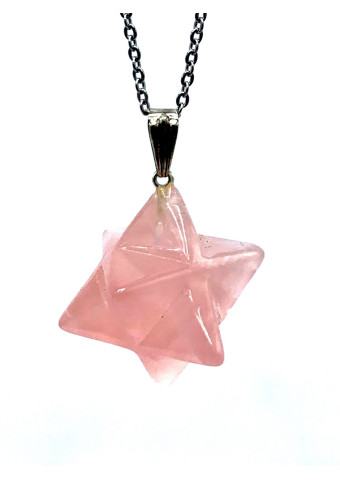 COLGANTE MERCABA DE CUARZO ROSA El colgante destaca por su forma de mercaba, esta hecho a mano por maestros artesanos que tienen mucha experiencia...