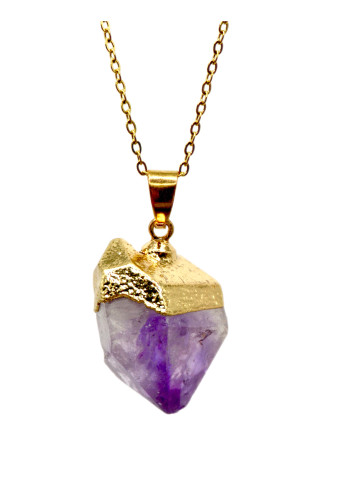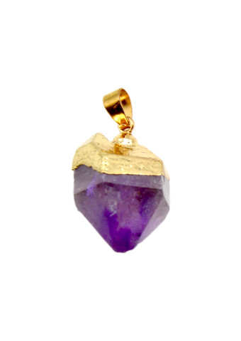 COLGANTE AMATISTA El colgante destaca por su original forma al natural sin pulir con el borde dorado, es un colgante elegante, fino y divertido....