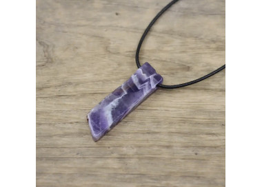 El collar destaca por su forma al irregular, es una joya elegante, original y divertida. Diseñada con piedras naturales de Amatista. Está ensamblado a mano.