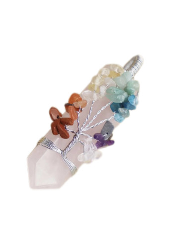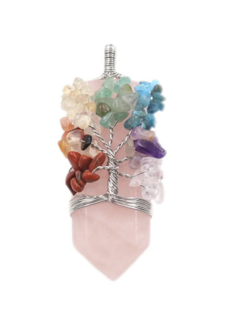 COLlar PUTA DE CUARZO ROSA 7 CHAKRAS El colar destaca por su forma en punta con el Árbol de la vida engarzado su alrededor, que le da un toque...