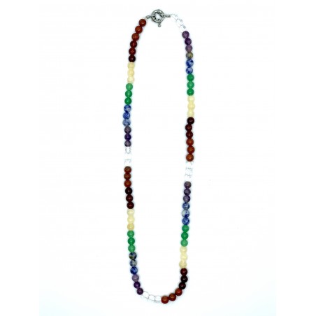 COLLAR 7 CHAKRAS El collar destaca por sus bolitas de diferentes tamaños, es una joya elegante, original y divertida. Diseñada con piedras...