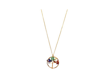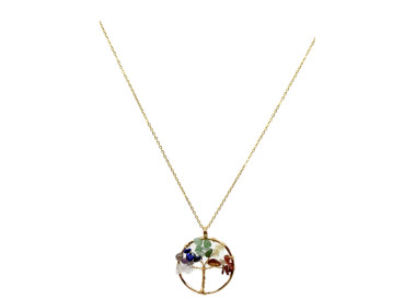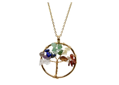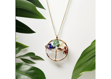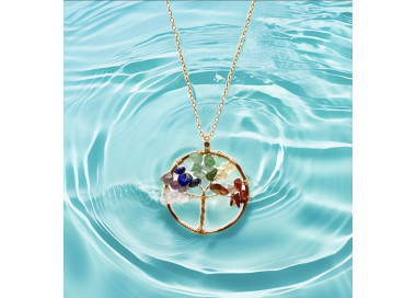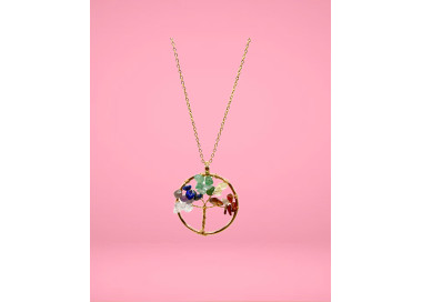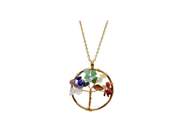 El collar destaca por su forma de árbol de la vida es una joya elegante, original y divertida. Diseñada con piedras naturales. Está engarzado a mano en Acero, tanto el colgante como su cadenita.