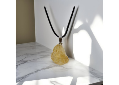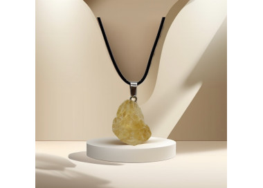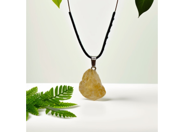 El collar destaca por su original forma al natural sin pulir, es un collar elegante, fino y divertido. Diseñado con piedras naturales de Cuarzo Citrino, le dará un toque especial a tu look. Está ensamblado a mano en Acero, tanto el colgante como su cadenita.