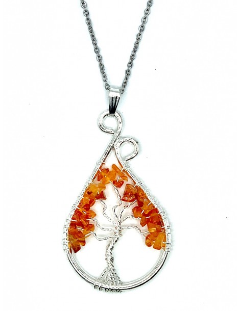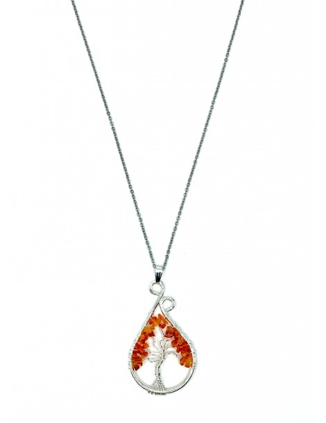 El collar destaca por su forma de árbol de la vida, es una joya elegante, original y divertida. Diseñada con piedras naturales de Cornalina. Está ensamblado a mano.