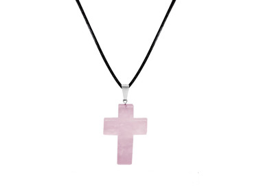 El collar destaca por su forma de Cruz, es una joya elegante, original y divertida. Diseñada con piedras naturales de Cuarzo Rosa. Está ensamblado a mano en Acero, tanto el colgante como su cadenita.