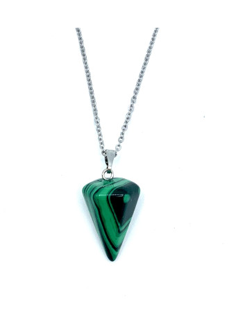 COLLAR PENDULO DE MALAQUITA El collar destaca por su forma de punta, es una joya elegante, original y divertida. Diseñada con piedras de...
