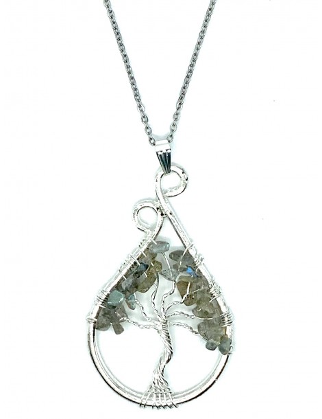 El collar destaca por su forma de gota, es una joya elegante, original y divertida. Diseñada con piedras naturales de Labradorita. Está ensamblado a mano en Acero, tanto el colgante como su cadenita.