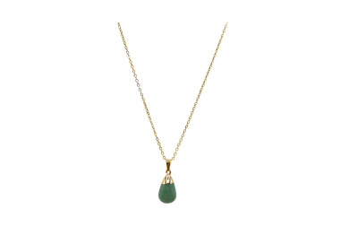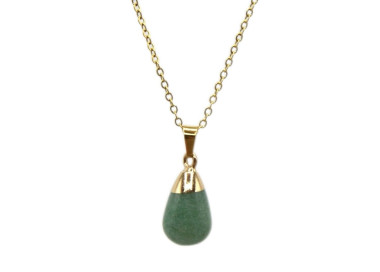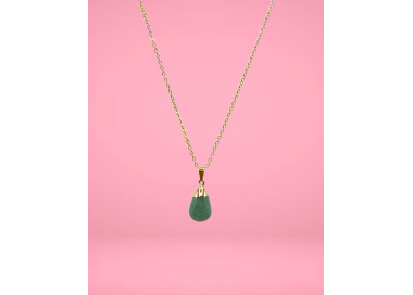 El collar destaca por su original forma de Gota, es un collar elegante, fino y divertido. Diseñado con piedras naturales de Aventurina Verde, le dará un toque especial a tu look. Está ensamblado a mano en Acero, tanto el colgante como su cadenita.