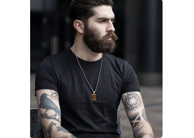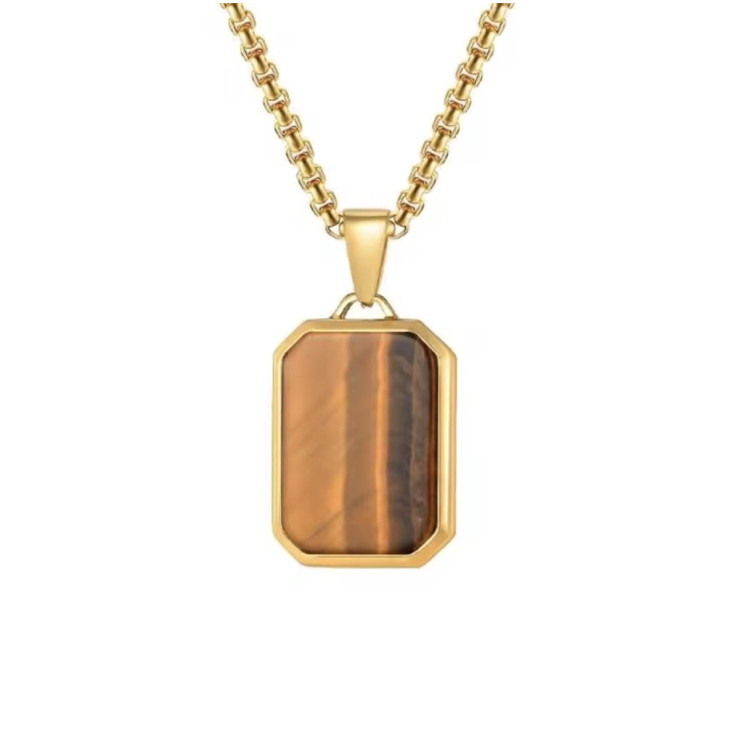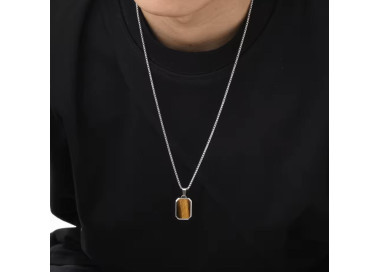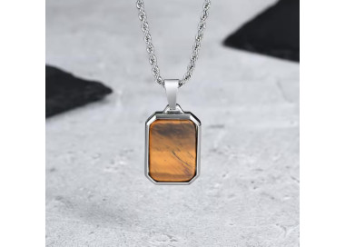 Un amuleto de energía y coraje. El Ojo de Tigre, con sus reflejos dorados y cálidos, se combina con el acero para crear un collar poderoso, lleno de carácter. Perfecto para quienes se atreven a destacar con estilo.
