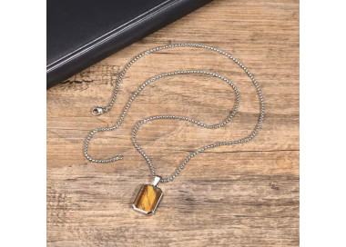 Un amuleto de energía y coraje. El Ojo de Tigre, con sus reflejos dorados y cálidos, se combina con el acero para crear un collar poderoso, lleno de carácter. Perfecto para quienes se atreven a destacar con estilo.