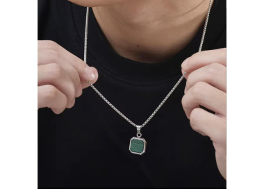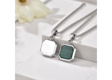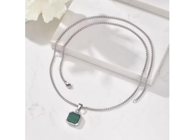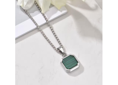 Es un collar de diseño hexagonal, tiene como protagonista una Malaquita como pieza central, es un collar exclusivo y elegante. Te lo puedes poner en cualquier ocasión, la cadena veneciana ofrece un confort superior y la longitud ajustable te permite elegir la caída del colgante.