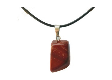 El collar destaca por su original forma de rodado natural, es fino y divertido. Diseñado con piedras naturales de Jaspe Rojo, le dará un toque especial a tu look. Está ensamblado a mano, incluye cordón de cuero.