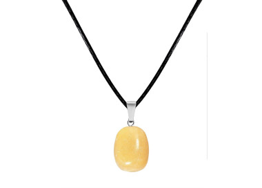 El collar destaca por su original forma de rodado natural, es fino y divertido. Diseñado con piedras naturales de Calcita Naranja, le dará un toque especial a tu look. Está ensamblado a mano, incluye cordón de cuero.