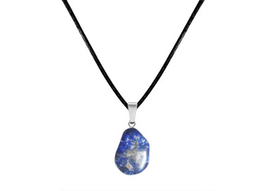 El collar destaca por su original forma de rodado natural, es fino y divertido. Diseñado con piedras naturales de Sodalita, le dará un toque especial a tu look. Está ensamblado a mano, incluye cordón de cuero.