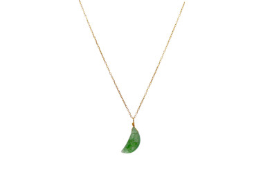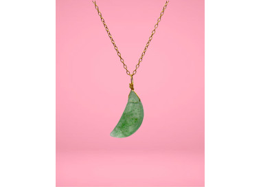 El collar destaca por su original forma de luna, es un collar elegante, fino y divertido. Diseñado con piedras naturales de Fluorita, le dará un toque especial a tu look. Está ensamblado a mano y la cadena es de Plata de Ley 925.