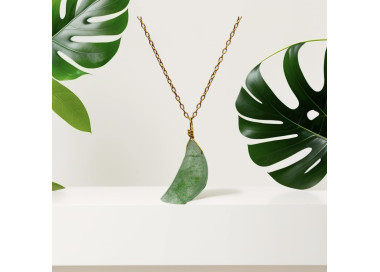 COLLAR AVENTURINA VERDE El collar destaca por su forma al irregular, es una joya elegante, original y divertida. Diseñada con piedras naturales de...