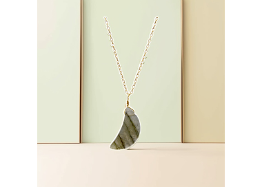El collar destaca por su original forma de luna, es un collar elegante, fino y divertido. Diseñado con piedras naturales de Labradorita, le dará un toque especial a tu look. Está ensamblado a mano y la cadena es de Plata de Ley 925.