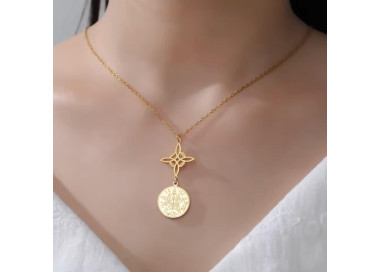 El collar está elaborado en Acero 316L antialérgico, reconocido por su durabilidad y brillo impecable, y terminado con un elegante chapado en Oro de 18 K, que aporta un toque cálido y sofisticado. Su cadena rolo de 1.4 mm y el cierre mosquetón garantizan comodidad y seguridad en el uso diario. un elegante collar de Nudo de Bruja con un acabado dorado o plateado, que revela un fascinante secreto!