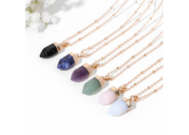 COLLAR PUNTA DE AMATISTA El collar destaca por su forma de punta, es una joya elegante, original y divertida. Diseñada con piedras naturales de...