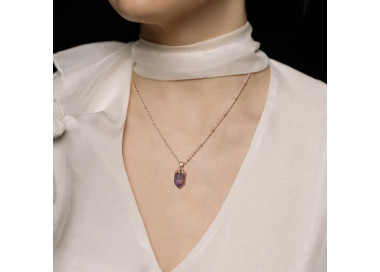 COLLAR AMATISTA El collar destaca por su original forma al natural sin pulir, es un collar elegante, fino y divertido. Diseñado con piedras...