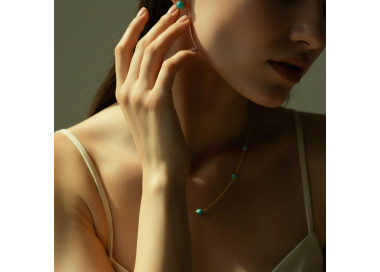 Una fusión perfecta entre elegancia y sofisticación, un conjunto que combina la tendencia actual con piedras naturales de Turquesa. Elaborado en Acero inoxidable dorado de alta calidad.