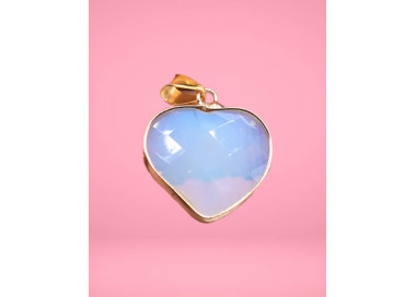 El colgante destaca por su talla en forma de corazón tallado, es una joya elegante, original y divertida. Diseñada con piedras de Opalina. Está ensamblado a mano.