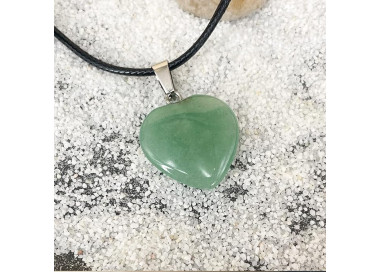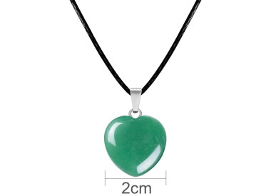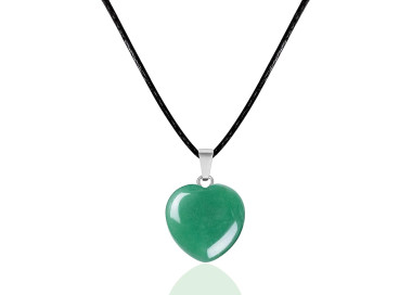 El collar destaca por su talla en forma de corazón, es una joya elegante, original y divertida. Diseñada con piedras naturales de Aventurina Verde. Está ensamblado a mano en Acero, tanto el colgante como su cadenita.