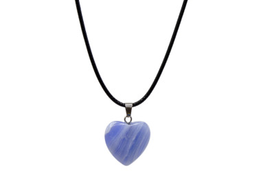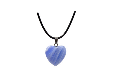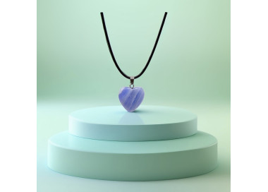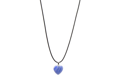 El collar destaca por su talla en forma de corazón, es una joya elegante, original y divertida. Diseñada con piedras naturales de Calcedonia Está ensamblado a mano en Acero, tanto el colgante como su cadenita.