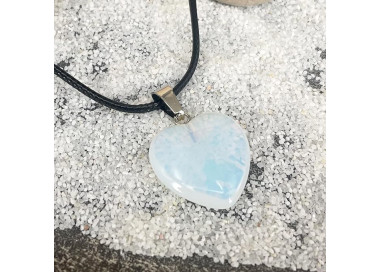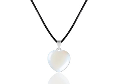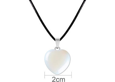 El collar destaca por su talla en forma de corazón, es una joya elegante, original y divertida. Diseñada con piedras de Opalina. Está ensamblado a mano en Acero, tanto el colgante como su cadenita.