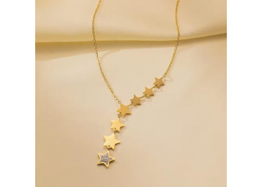 El Collar Galaxy Stars es una oda al resplandor femenino: delicado, luminoso y lleno de magia. Diseñado para mujeres que buscan una joya con encanto celestial, esta pieza deslumbra con una composición de estrellas doradas en cascada, creando un efecto visual que recuerda a una lluvia de luz atravesando el cielo.