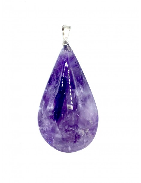 El colgante destaca por su forma de gota, es una joya elegante, original y divertida. Diseñada con piedras naturales de Amatista. Está ensamblado a mano en Acero.
