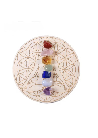 Mini Set 7 CHAKRAS Set de minerales de los 7 Chakras con la placa de madera incluida. Minerales: Cuarzo Blanco, Amatista, Lapislázuli, Aventurina...
