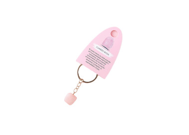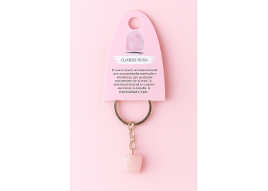 Elegante llavero elaborado en piedra natural de Cuarzo Rosa que destaca por su color rosa pastel.