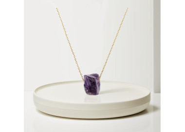 COLLAR AMATISTA El collar destaca por su original forma al natural sin pulir con el borde dorado, es un collar elegante, fino y divertido....