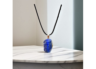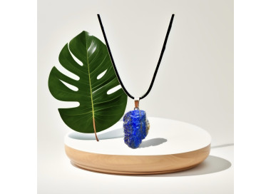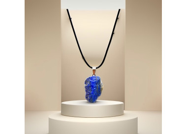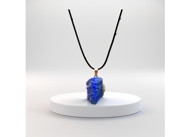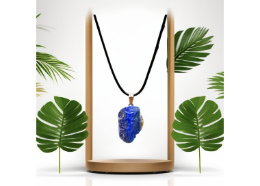 El collar destaca por su original forma al natural sin pulir, es un collar elegante, fino y divertido. Diseñado con piedras naturales de Lapislázuli, le dará un toque especial a tu look. Está ensamblado a mano en Acero, tanto el colgante como su cadenita.