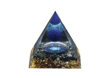 Pirámide de Orgonita hecha de minerales naturales de Lapislázuli y Turmalina Negra. La forma de pirámide única le da un toque de elegancia sofisticación, perfectas para decorar el hogar. Materiales de alta calidad y de minerales auténticos y originales.