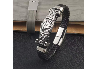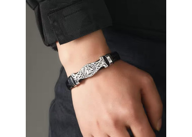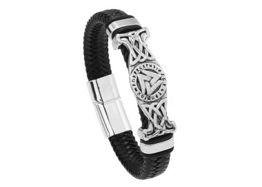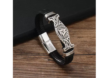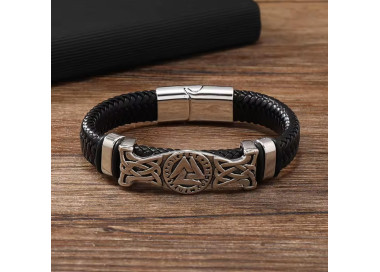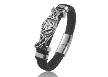 La pulsera Valhalla es un símbolo de fuerza, lealtad y espíritu guerrero. Su diseño combina cuero trenzado y acero inoxidable de nudos vikingos. Te la puedes poner en cualquier ocasión. Es de cierre magnético muy cómoda de llevar.